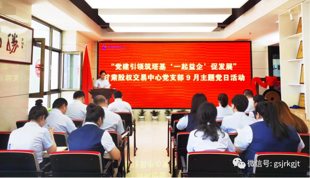 近日,甘肃股权交易中心党支部召开“党建引领筑塔基‘一起益企’促发展”主题党日活动。支部书记樊亚娟主持会议,全体党员及员工参加。