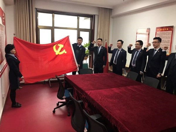 会后,全体党员在党建活动室面对党旗庄严宣誓,重温自己对党忠诚的誓言,表达了为党的事业奋斗终身的决心和信心。